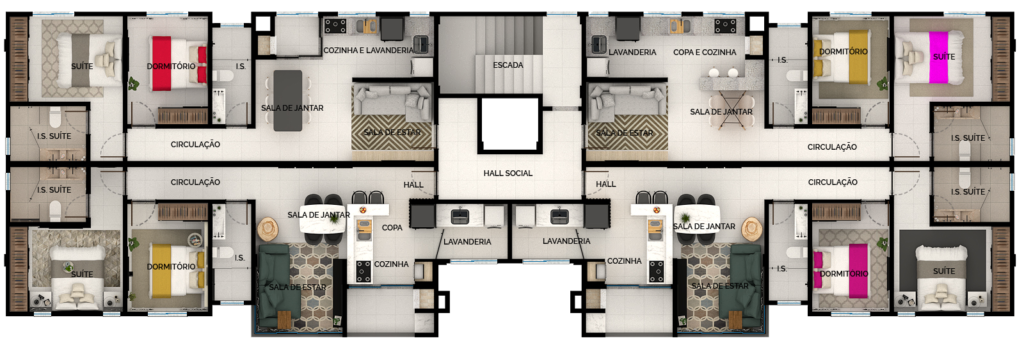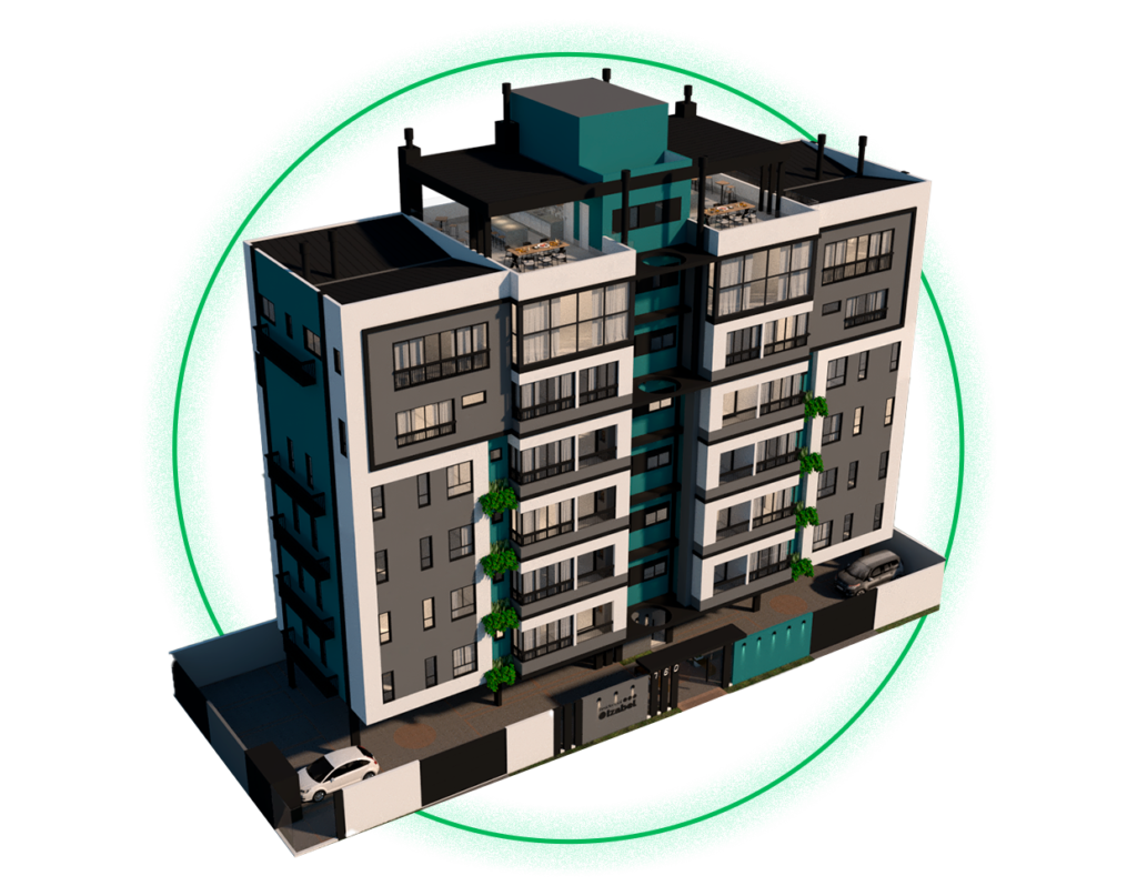 Construção com laje protendida, garantindo maior durabilidade e conforto acústico.